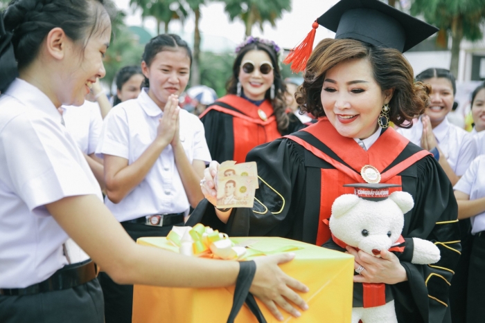 即将获得文凭的毕业生 在2018年学年,有艺术家,明星,歌手和演员,例如Curtain Fah-Ornpaphat Chantorn,前演员Nui-Kesarin Ekthawatkul,前跆拳道运动员,国家队,老师,讲师和女演员Cherry-Melisa Mahapol。 2006年泰国世界小姐,毕业于政治学博士Pha-Porphatsorn Worasirinda,2014年泰国小姐盛大,政治科学硕士,“ NEWERA”,银行-Rath Phuangprayong,学生 董公共管理硕士范式“大亨9”。树日,音乐和商学博士的文化辩论-卡宁俱乐部发展学院商学院MBA营销人员。