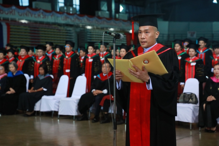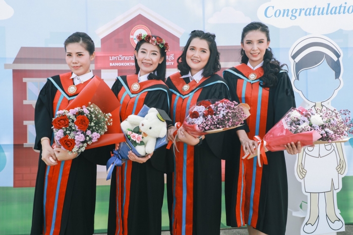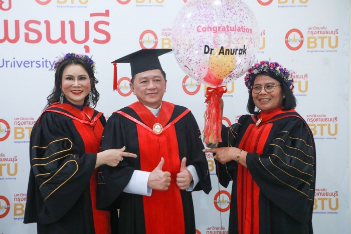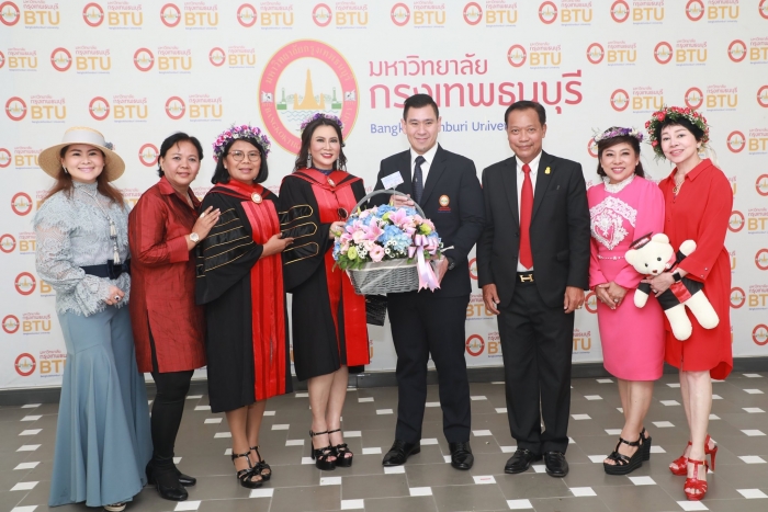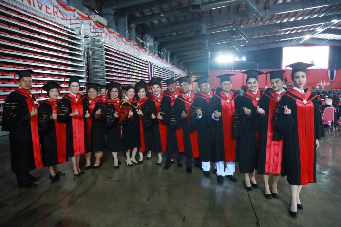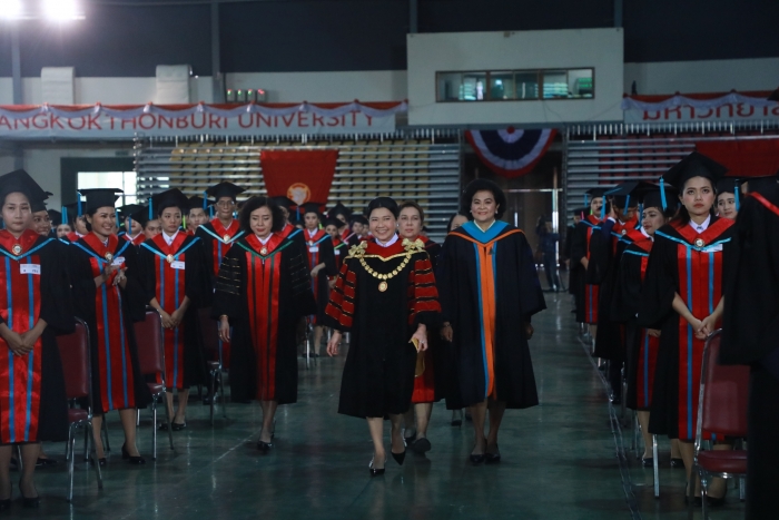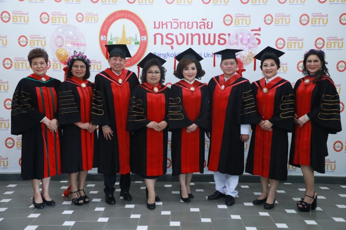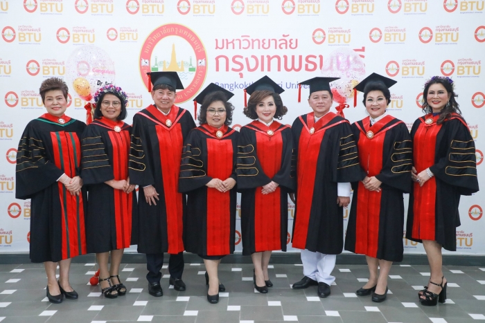 年8月25日举行毕业典礼的毕业生。 在这方面,劳工部助理部长Duangrit Benjathikulchaikunrung博士与教授相随。学术事务副总裁Chaiyong Phromwong博士,行政副总裁Witthaya Benjathikul教授 并于2019年8月18日在曼谷吞武里大学Chanchai Arcadia Building祝贺毕业生获得博士学位,硕士学位和研究生学位。