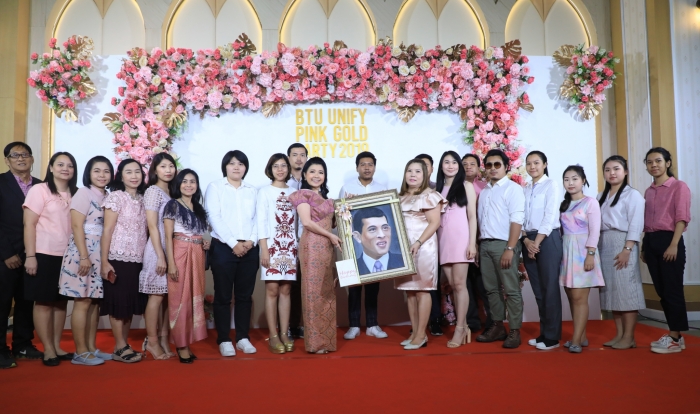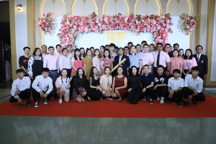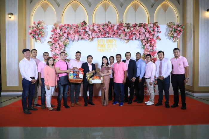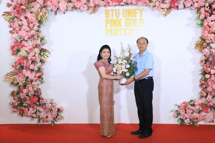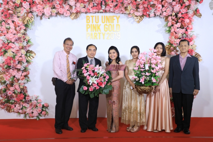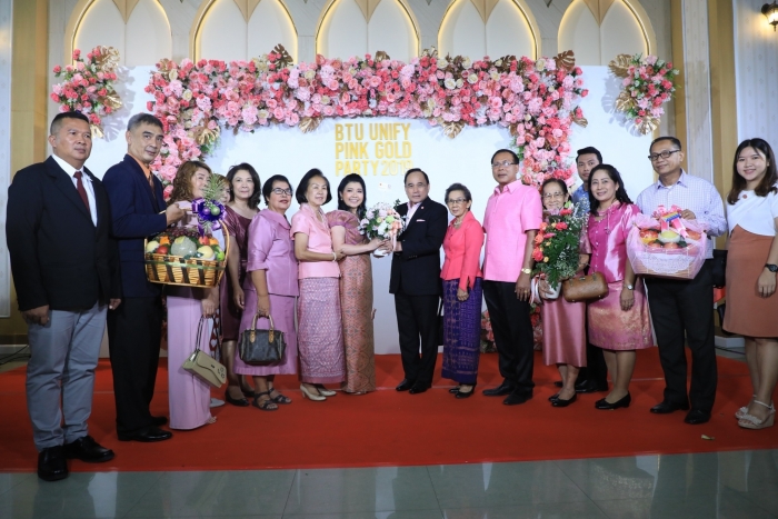 曼谷吞武里大学校长Bang Bang Ben Chatikun副教授 主持了“ BTU统一粉红金派对2019”的开幕式,这是建立良好关系和团结的传统。在大学的行政人员,教职员工之间 及附属机构 曼谷吞武里大学校长Bangon Benjathikul教授在这里为所有校友,名人,演员和嘉宾提供了机会,庆祝BTU的生日。