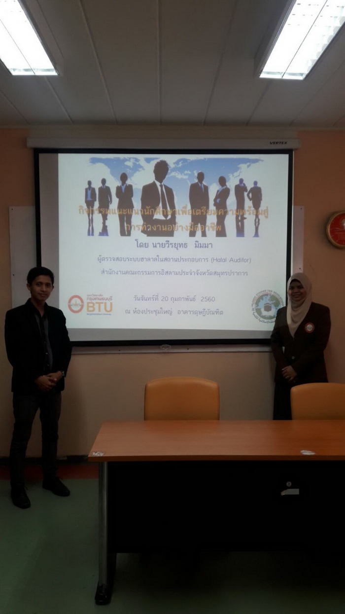 -目前是北榄府伊斯兰委员会工作场所的清真审核员(Halal Auditor)办公室。并为HACCP,ISO,清真钻石认证系统的演讲者