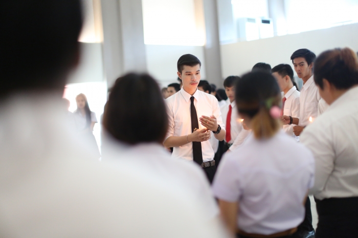 拜寺欢迎仪式 法学院,2015年8月31日, 星期一 ,曼谷吞武里大学BTU HALL